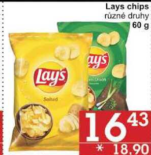 Aktuální slevu na Lay's Salted Lays chips různé druhy, 60 g zjistíte jednoduše nastavením Strážce slev .