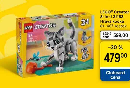 Aktuální slevu na LEGO® Creator 3-in-1 31163 Hravá kočka 8+, 407 kostek zjistíte jednoduše nastavením Strážce slev .
