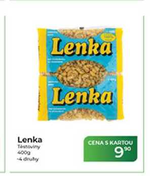 Aktuální slevu na Lenka Těstoviny 400g zjistíte jednoduše nastavením Strážce slev .