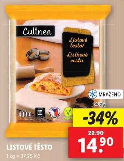 Aktuální slevu na LISTOVÉ TĚSTO, 400 g zjistíte jednoduše nastavením Strážce slev .