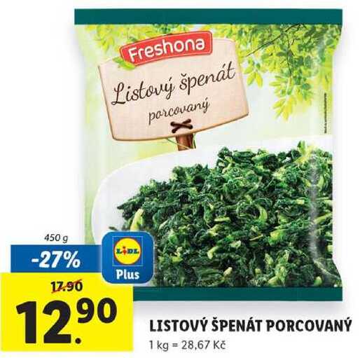 Aktuální slevu na LISTOVÝ ŠPENÁT PORCOVANÝ, 450 g zjistíte jednoduše nastavením Strážce slev .