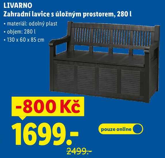 Aktuální slevu na LIVARNO Zahradní lavice s úložným prostorem, 280 l zjistíte jednoduše nastavením Strážce slev .