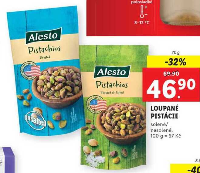 Aktuální slevu na LOUPANÉ PISTÁCIE solené/nesolené, 70 g zjistíte jednoduše nastavením Strážce slev .