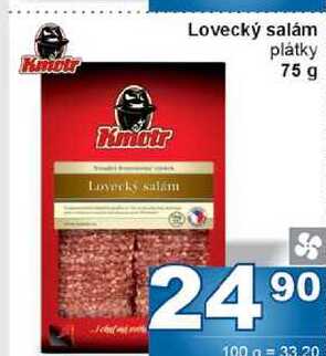 Aktuální slevu na Lovecký salám plátky 75 g zjistíte jednoduše nastavením Strážce slev .