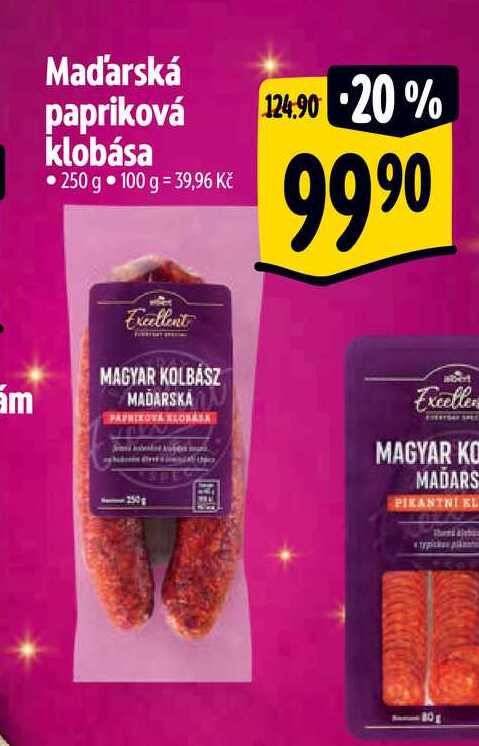 Aktuální slevu na Maďarská papriková klobása 250 g zjistíte jednoduše nastavením Strážce slev .