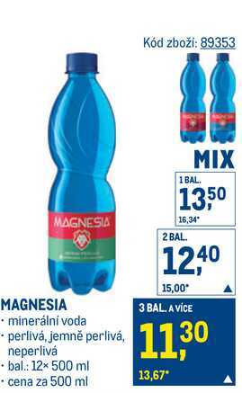 Aktuální slevu na MAGNESIA minerální voda perlivá, jemně perlivá, bal 12× 500 ml cena za 500 ml zjistíte jednoduše nastavením Strážce slev .