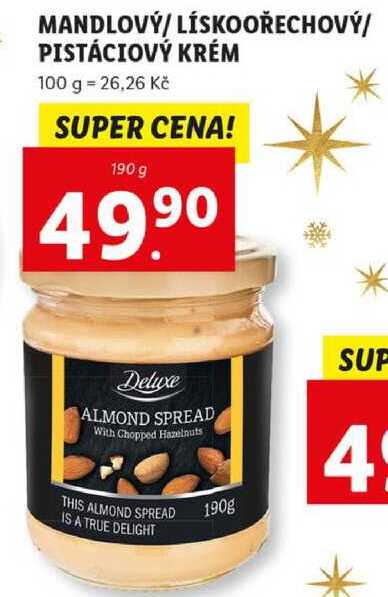 Aktuální slevu na MANDLOVÝ/LÍSKOOŘECHOVÝ/PISTÁCIOVÝ KRÉM, 190 g zjistíte jednoduše nastavením Strážce slev .