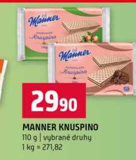 Aktuální slevu na MANNER KNUSPINO 110 g vybrané druhy zjistíte jednoduše nastavením Strážce slev .