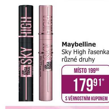 Aktuální slevu na Maybelline Sky High řasenka různé druhy zjistíte jednoduše nastavením Strážce slev .