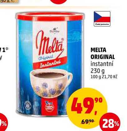 Aktuální slevu na MELTA ORIGINAL instantní, 230 g zjistíte jednoduše nastavením Strážce slev .