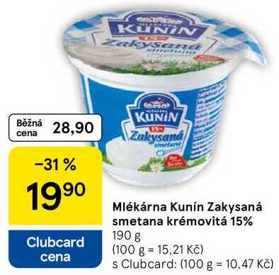 Mlékárna Kunín Zakysaná smetana krémovitá 15%, 190 g