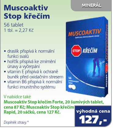 Aktuální slevu na Muscoaktiv Stop křečím 56 tablet zjistíte jednoduše nastavením Strážce slev .