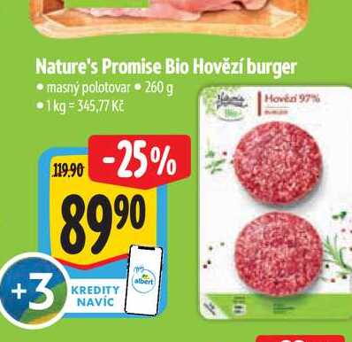 Aktuální slevu na Nature's Promise Bio Hovězí burger 260 g zjistíte jednoduše nastavením Strážce slev .