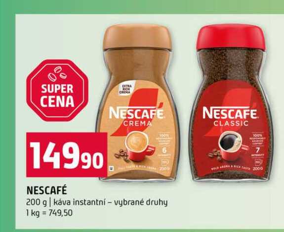 Aktuální slevu na NESCAFÉ 200 g káva instantní vybrané druhy zjistíte jednoduše nastavením Strážce slev .