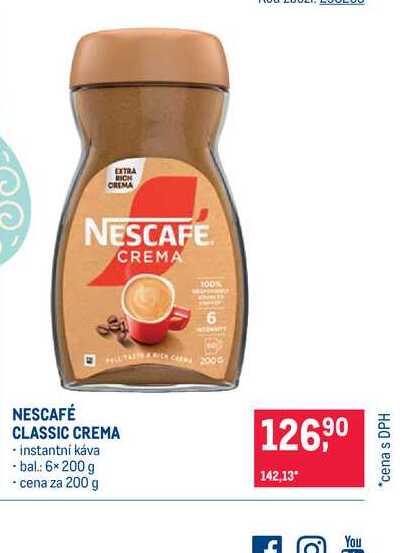Aktuální slevu na NESCAFÉ CLASSIC CREMA instantní káva bal 6×200 g cena za 200 g zjistíte jednoduše nastavením Strážce slev .