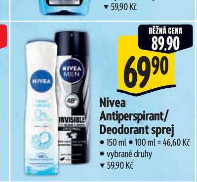 Aktuální slevu na Nivea Antiperspirant/ Deodorant sprej 150 ml zjistíte jednoduše nastavením Strážce slev .