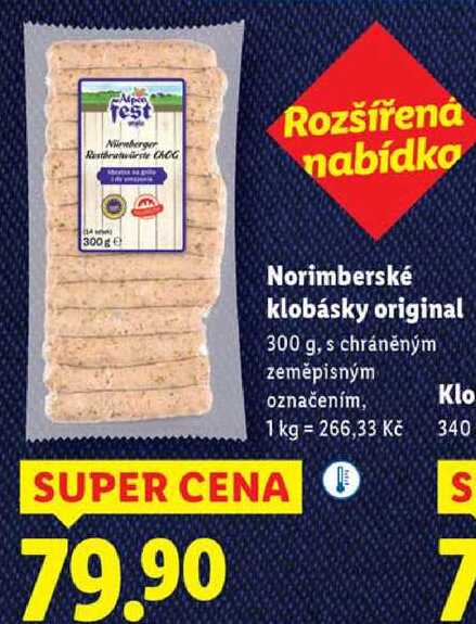 Aktuální slevu na Norimberské klobásky original, 300 g zjistíte jednoduše nastavením Strážce slev .