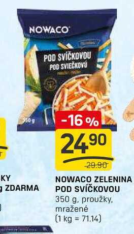 Aktuální slevu na NOWACO ZELENINA POD SVÍČKOVOU 350 g zjistíte jednoduše nastavením Strážce slev .