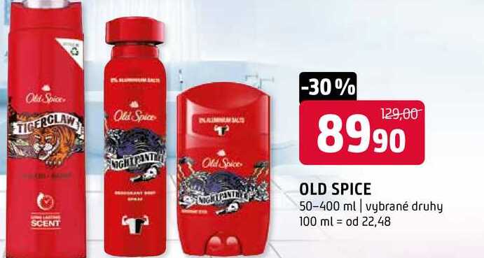 Aktuální slevu na OLD SPICE 50-400 ml vybrané druhy zjistíte jednoduše nastavením Strážce slev .