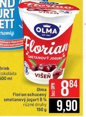 Aktuální slevu na Olma Florian ochucený smetanový jogurt 8% různé druhy 150 g zjistíte jednoduše nastavením Strážce slev .
