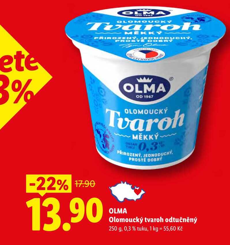 Aktuální slevu na OLMA Olomoucký tvaroh odtučněný, 250 g zjistíte jednoduše nastavením Strážce slev .