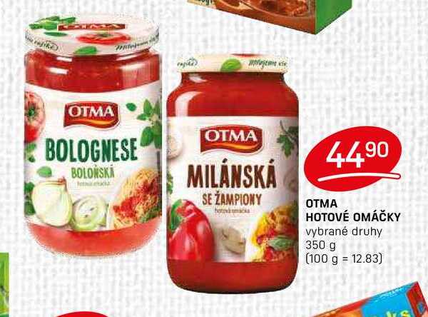 Aktuální slevu na OTMA HOTOVÉ OMÁČKY vybrané druhy 350 g zjistíte jednoduše nastavením Strážce slev .