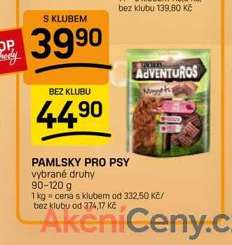 Aktuální slevu na PAMLSKY PRO PSY vybrané druhy 90-120 g zjistíte jednoduše nastavením Strážce slev .