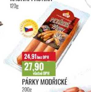 Aktuální slevu na PÁRKY MODŘICKÉ 200g zjistíte jednoduše nastavením Strážce slev .