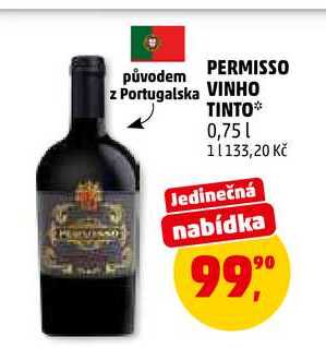 Aktuální slevu na PERMISSO VINHO TINTO, 0,75 l zjistíte jednoduše nastavením Strážce slev .
