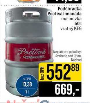 Aktuální slevu na Poděbradka Poctivá limonáda malinovka 50l zjistíte jednoduše nastavením Strážce slev .