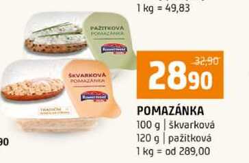 Aktuální slevu na POMAZÁNKA 100 g škvarková 120 g pažitková zjistíte jednoduše nastavením Strážce slev .
