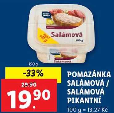 Aktuální slevu na POMAZÁNKA SALÁMOVÁ/SALÁMOVÁ PIKANTNÍ, 150 g zjistíte jednoduše nastavením Strážce slev .