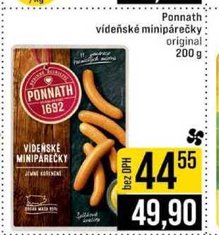 Aktuální slevu na Ponnath vídeňské minipárečky original 200 g zjistíte jednoduše nastavením Strážce slev .