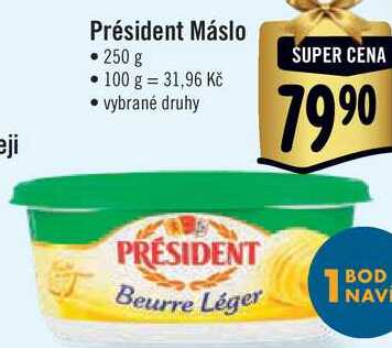 Aktuální slevu na Président Máslo, 250 g zjistíte jednoduše nastavením Strážce slev .
