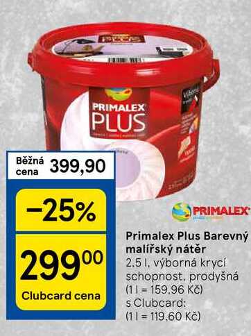 Aktuální slevu na Primalex Plus Barevný malířský nátěr, 2.5 1. výborná krycí schopnost zjistíte jednoduše nastavením Strážce slev .