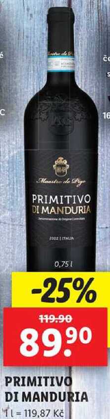 Aktuální slevu na PRIMITIVO DI MANDURIA, 0,75 l zjistíte jednoduše nastavením Strážce slev .