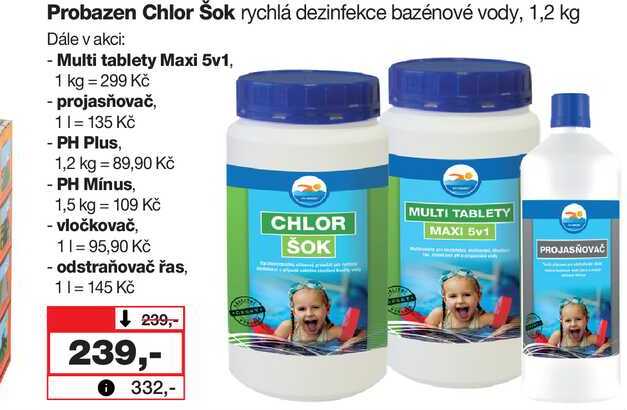 Aktuální slevu na Probazen Chlor Šok rychlá dezinfekce bazénové vody, 1,2 kg zjistíte jednoduše nastavením Strážce slev .