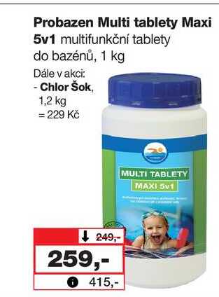 Aktuální slevu na Probazen Multi tablety Maxi 5v1 multifunkční tablety do bazénů, 1 kg zjistíte jednoduše nastavením Strážce slev .