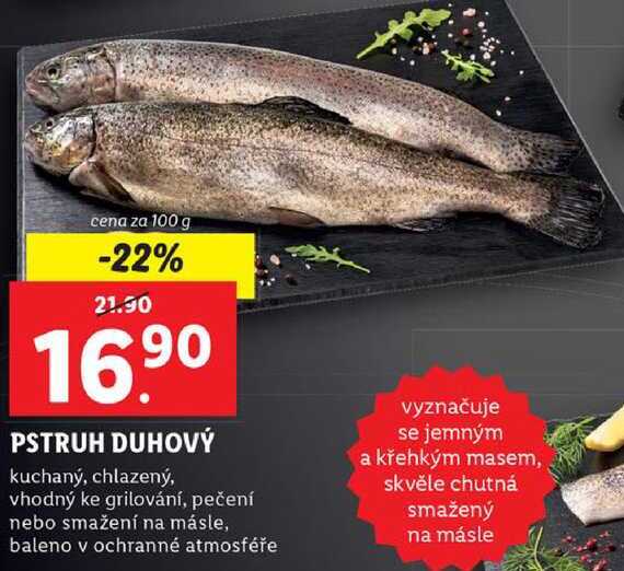 Aktuální slevu na PSTRUH DUHOVÝ, cena za 100 g zjistíte jednoduše nastavením Strážce slev .