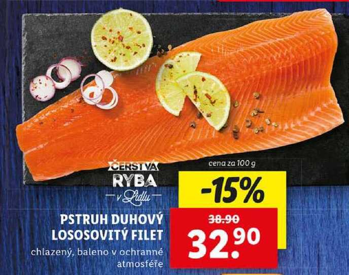 Aktuální slevu na PSTRUH DUHOVÝ LOSOSOVITÝ FILET, cena za 100 g zjistíte jednoduše nastavením Strážce slev .