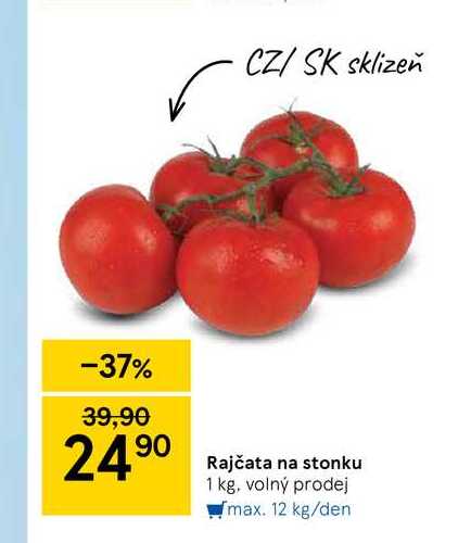 Aktuální slevu na Rajčata na stonku 1 kg zjistíte jednoduše nastavením Strážce slev .