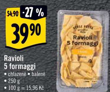 Aktuální slevu na Ravioli 5 formaggi 250 g zjistíte jednoduše nastavením Strážce slev .