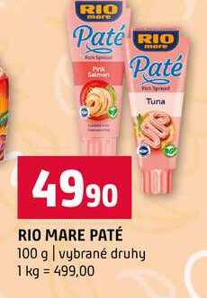 Aktuální slevu na RIO MARE PATÉ 100 g vybrané druhy zjistíte jednoduše nastavením Strážce slev .