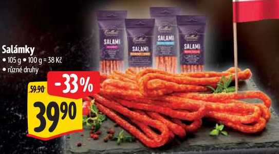 Aktuální slevu na Salámky, 105 g zjistíte jednoduše nastavením Strážce slev .