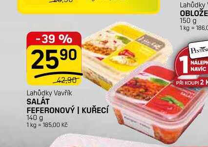 Aktuální slevu na SALÁT FEFERONOVÝ | KUŘECÍ 140 g zjistíte jednoduše nastavením Strážce slev .
