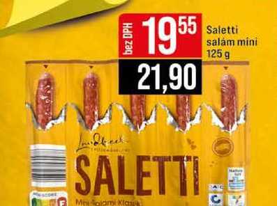Aktuální slevu na Saletti salam mini 125 g zjistíte jednoduše nastavením Strážce slev .