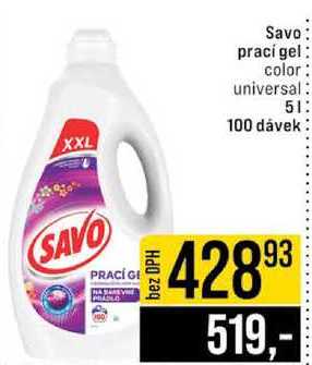 Aktuální slevu na Savo prací gel color universal 5l zjistíte jednoduše nastavením Strážce slev .