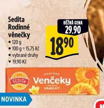 Aktuální slevu na Sedita Rodinné věnečky, 120 g zjistíte jednoduše nastavením Strážce slev .