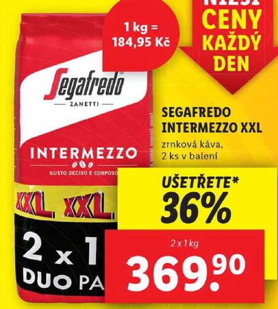 Aktuální slevu na SEGAFREDO INTERMEZZO XXL zrnková káva, 2x 1 kg zjistíte jednoduše nastavením Strážce slev .