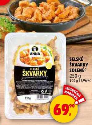 Aktuální slevu na SELSKÉ ŠKVARKY SOLENÉ, 250 g zjistíte jednoduše nastavením Strážce slev .